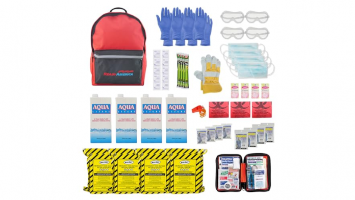 well-stocked shopper. “Very complete and I like the fact there’s a card inside that if you fill it out and send back to the manufacturer, in five years’ time they will remind you it’s time to replace the shelf-stable food and water. Makes being prepared easier.”