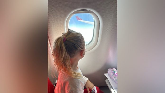 Young Nyla Trow looks out a window during the family’s whirlwind world trip. (Jam Press/@thetrowfamily)