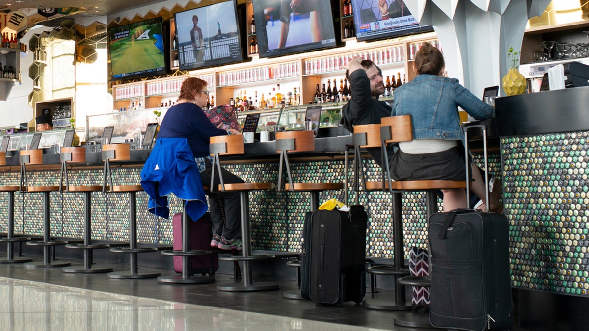 flight passengers drinking at an airport