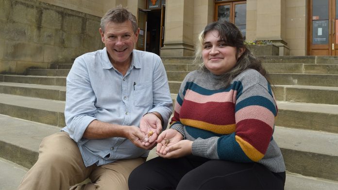 Archaeology student Yara Souza, at right, discovered a ninth century gold object in Redesdale, Northumberland, during her first excavation. (Newcastle University)