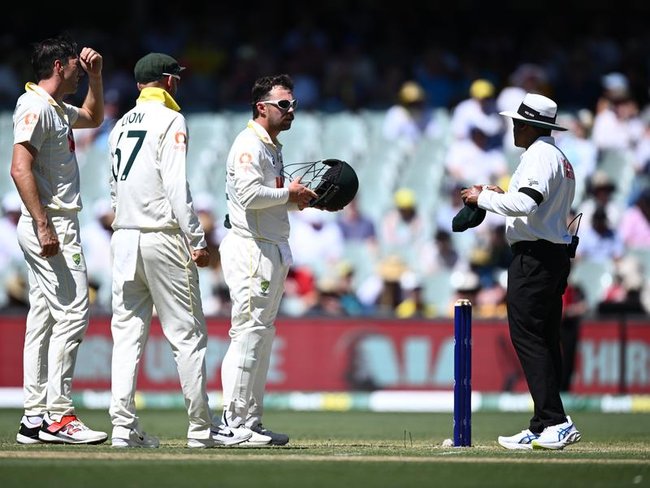 Travis Head (2-r) speaks to umpire Ahsan Raza after another controversy involving Snicko. Credit: AAP