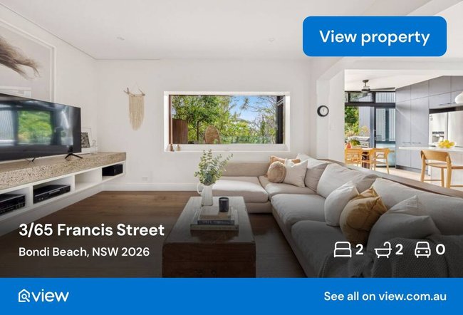 A treetop Bondi Beach sanctuary has fetched $2.66 million at auction, delivering its long-term owners a spectacular uplift after 18 years. Purchased for $645,000 in 2007, the two-bedroom apartment at 3/65 Francis Street sold well above reserve before a packed crowd.