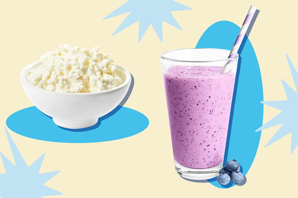 Cottage cheese dip: “Cottage cheese can easily be transformed into a protein-packed ranch dip by blending half a cup of cottage cheese with some ranch seasoning,” says dietitian Amy Davis. She recommends serving it with high-protein chips — Quest makes them in flavors like cheddar and ranch, for example — for “up to 30 g protein per serving.”